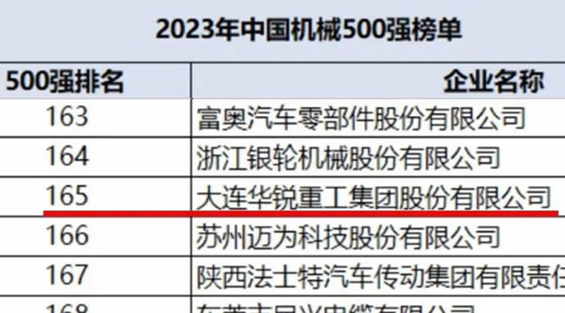 大連重工位列中國(guó)機(jī)械500強(qiáng)企業(yè)第165位