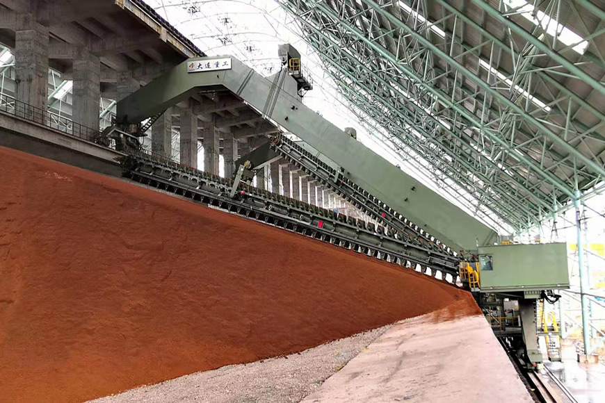 滾筒式混勻取料機(jī)適用于鋼廠、焦化廠、水泥廠和化工等企業(yè)的原料場(chǎng),搬運(yùn)輸送礦石、煤、煤炭等散料,是大型高效率的混勻取料設(shè)備。該產(chǎn)品原理通過(guò)料耙在整個(gè)料堆斷面上橫向刮料,底部筒體漏斗水平進(jìn)尺取料轉(zhuǎn)運(yùn)到地面皮帶。具有混勻效果好,出料成分穩(wěn)定,作業(yè)效率高等特點(diǎn)。大連重工于1989年開(kāi)始研制該類設(shè)備,取料能力范圍覆蓋800~2100t/h,軌距范圍30-40m。