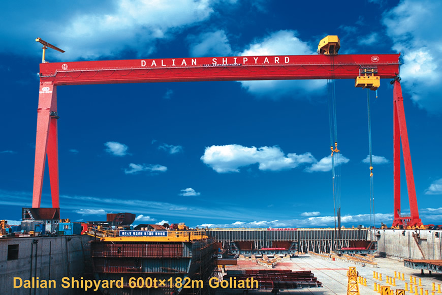 造船門式起重機是一種大起重量、大跨度,多功能、高效率的門式起重機,專用于船塢或船臺進(jìn)行大型船體分段、對接及翻轉(zhuǎn)作業(yè)。 大連重工自1999年研制出全變頻調(diào)速造船門式起重機以來,積累了豐富的機電設(shè)計、結(jié)構(gòu)分析計算、制造、運輸、安裝和調(diào)試經(jīng)驗,形成了自主的核心技術(shù),至今已研制了200—800噸等不同規(guī)格的造船門式起重機。