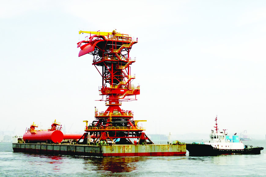 單點系泊是海洋石油開發(fā)工程中的重要設(shè)施之一。大連重工為中海油研制的單點系泊產(chǎn)品用于系泊海上石油加工處理裝置和油氣傳輸,設(shè)備總重為2144噸,企業(yè)承擔(dān)了單點系泊系統(tǒng)中建造工藝的制定、整體鋼結(jié)構(gòu)的制造、全部鑄件的鑄造、全部鑄鍛件的機加工以及除管系和電氣設(shè)備外所有部件的裝配。